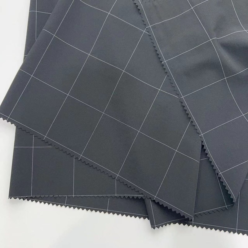 Durch diese Schritte wird der Polyester-Vier-Wege-Stretch-Plaid-Gewebe hergestellt, der die gewünschte Kombination von Eigenschaften bietet, einschließlich Faltenbeständigkeit, Vier-Wege-Stretch,und das unverwechselbare schwarz-weiße KartenmusterDieser Stoff ist dann bereit, für die Herstellung verschiedener Kleidungsstücke verwendet zu werden und bietet den Endnutzern Komfort, Stil und Haltbarkeit.